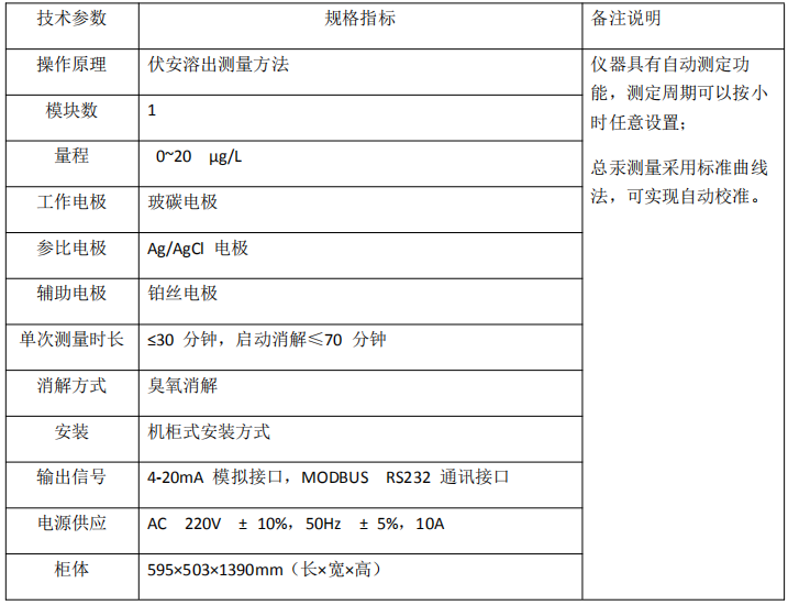 總汞在線分析儀技術(shù)參數(shù)