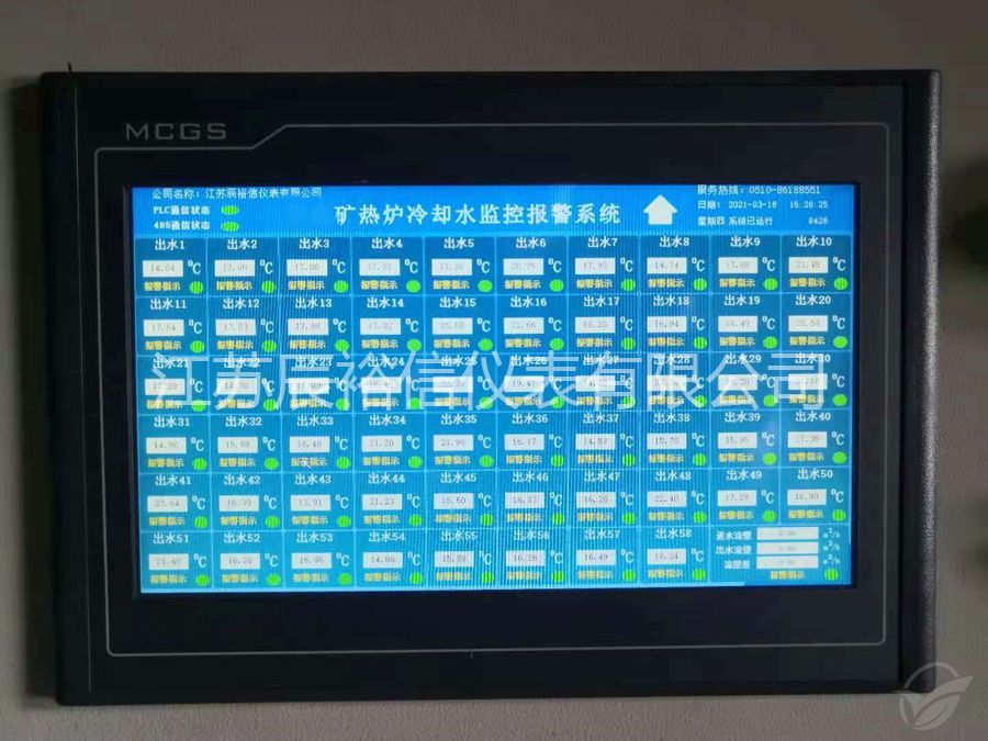 我公司通過編程對中頻爐水溫、水壓及流量進行實時監測。實現溫度、壓力、流量的實時顯示。也可工控機與PLC之間進行通訊,實時采集現場的溫度和壓力值,在上位機圖型上進行顯示,溫度、壓力超限時有實時報警功能。也可以對各閥門進行控制。計算機系統監測可對中頻爐水溫、水壓、流量進行實時監測,應用較靈活,可以根據客戶具體要求編程實現,既有對水溫、水壓顯示報警功能,還可以對相應的閥門進行控制。當顯示溫度是超過上限設定值50¨C時產生的報警顯示。計算機系統監測能夠對本地和遠傳實行監測和控制,通訊功能較強,可以實現集中監控,控制和監測精度較高,并且及時準確。采用此方法監測中頻爐冷卻水的水溫、水是較高檔次的設計方案。整個硬件價格較高,使用方便、安傘可靠,技術含量較高。